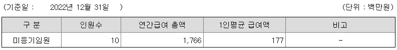 미등기임원의 평균연봉은 1억 7700만원이고 직원수는 10명입니다.