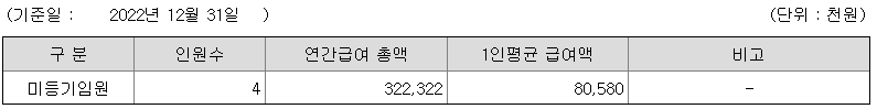 미등기임원의 평균연봉은 8000만원이고 직원수는 4명입니다.