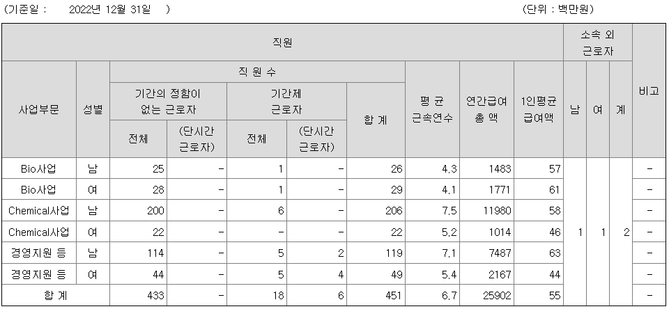 | Chemical사업 | 여 | 22 | 5.2 | 56 |