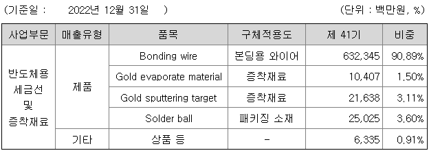 당사는 용인본사와 중국 쿤산을 거점으로 하여 반도체 IDM 업체와 후공정 업체들을 대상으로 생산, 판매를 진행하고 있는 글로벌 소재 기업입니다. 사업 부문 별로는 Bonding Wire, Solder Ball 등의 반도체 소재 사업과 원료재생사업, Solder Paste 등의 반도체 제품사업, 2차 전지 등의 신소재 사업을 영위하고 있습니다