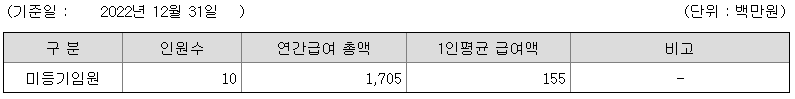 미등기임원의 평균연봉은 1억 5500만원이고 직원수는 10명입니다.