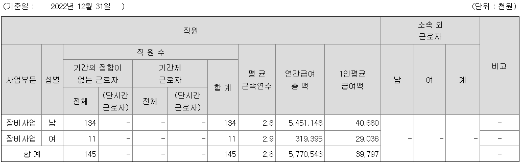 | 장비사업 | 남 | 134 | 2.8 | 40 |