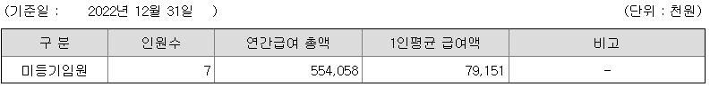 미등기임원의 평균연봉은 7900만원이고 직원수는 7명입니다.