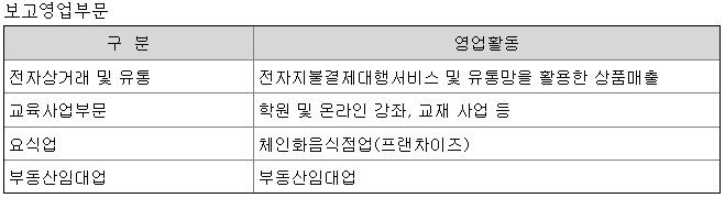 연결기업은 제공하는 재화나 용역에 근거하여 영업부문을 구분하고 각 부문의 재무정보를 내부관리목적으로 활용하고 있는 바 4개의 보고영업부문은 다음과 같습니다.