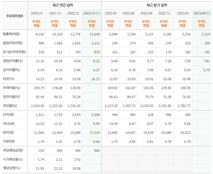 2022년 매출은 1조 1776억, 영업이익은 1065억, 당기순이익은 704억입니다. 그리고 영업이익률은 9.04%입니다.