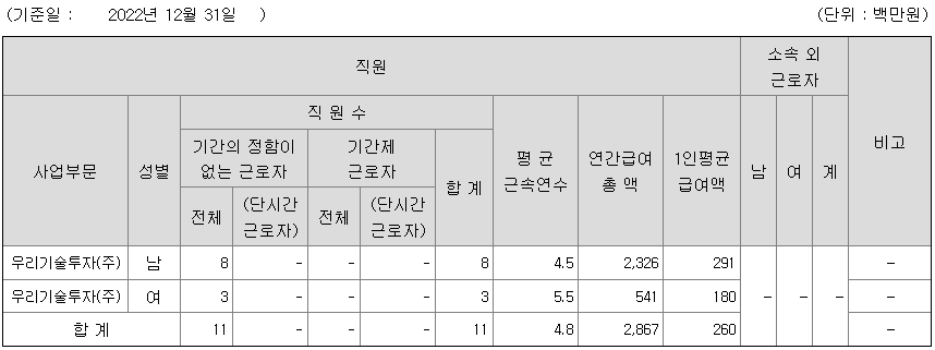 | 우리기술투자(주) | 여 | 3 | 5.5 | 180 |