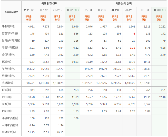 2022년 매출은 7934억, 영업이익은 321억, 당기순이익은 239억입니다. 그리고 영업이익률은 4.04%입니다.