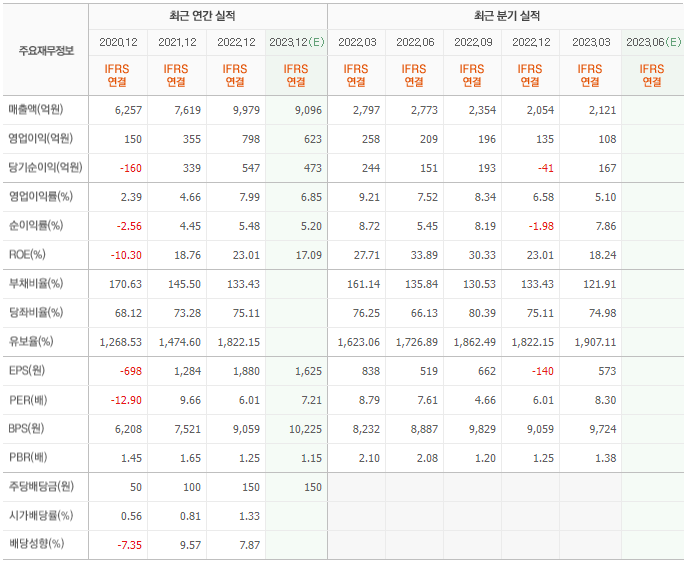 2022년 매출은 9979억, 영업이익은 798억, 당기순이익은 547억입니다. 그리고 영업이익률은 7.99%입니다.