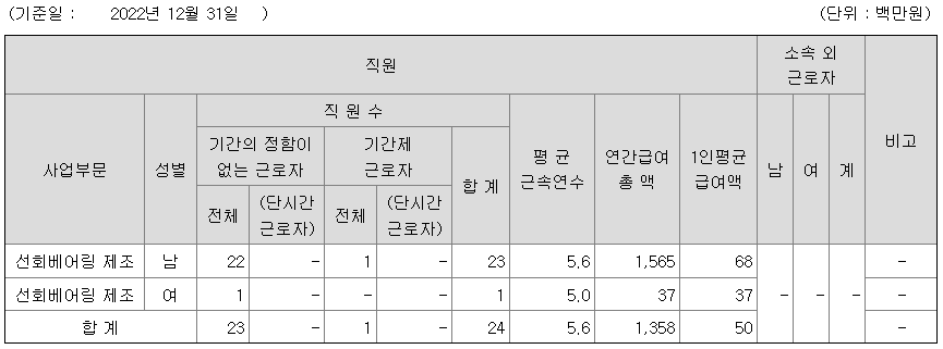 | 선회베어링 제조 | 남 | 23 | 5.6 | 68 |
