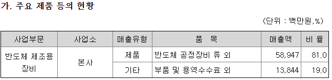 당사는 현재 반도체장비(패키징 장비)의 제조와 판매(그 부속 부품 및 기술서비스 포함)라는 1개의 주된 사업부문을 영위하고 있으며, 종속회사의 주요사업 역시 동일하므로 따로 구분하지 아니하였습니다. 당사는 국내 본사에서 반도체장비를 제조, 판매 및 부품 판매, 기술서비스를 총괄하고 있으며, 미국 지역 법인인 SEMIgear Inc.(Texas Austin 소재) 1개의 종속회사가 운영되고 있습니다.