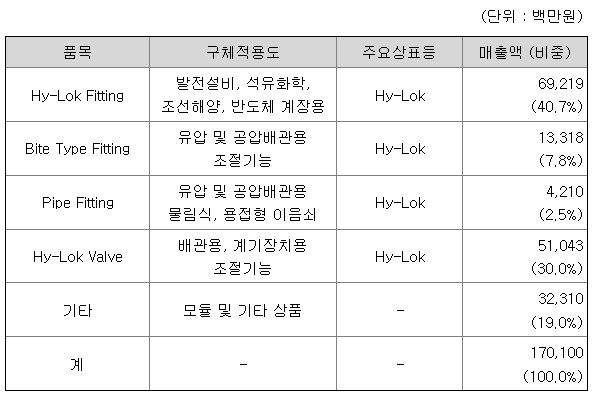 당사와 연결 종속회사는 관이음쇠와 밸브의 제조 및 판매업을 주 업종으로 동일한 사업을 영위하고 있습니다.