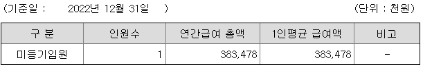 미등기임원의 평균연봉은 3억 8300만원이고 직원수는 1명입니다.