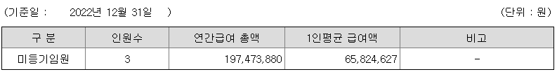 미등기임원의 평균연봉은 1억 6500만원이고 직원수는 3명입니다.