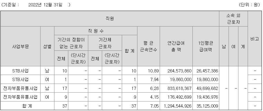 | 전자부품유통사업 | 여 | 9 | 4.15 | 19 |