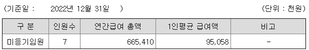 미등기임원의 평균연봉은 9505만원이고 직원수는 7명입니다.