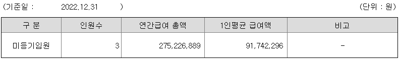 미등기임원의 평균연봉은 9174만원이고 직원수는 3명입니다.