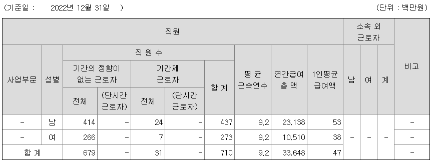 남성의 평균연봉은 5300만원이고 직원수는 437명, 여성은 3800만원이고 직원수는 273명입니다. 전체 평균연봉은 4700만원이고 직원수는 710명입니다.