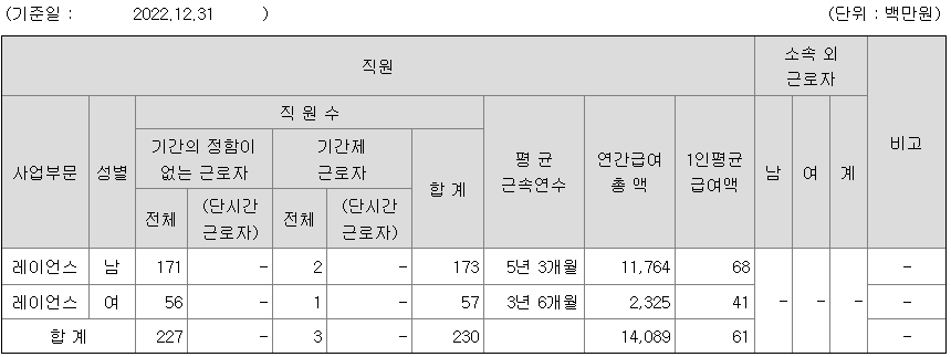 미등기임원의 평균연봉은 1억 2000만원이고 직원수는 2명입니다.