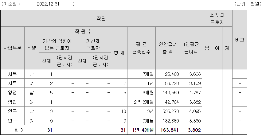 전체 평균연봉은 380만원이고 직원수는 31명입니다.