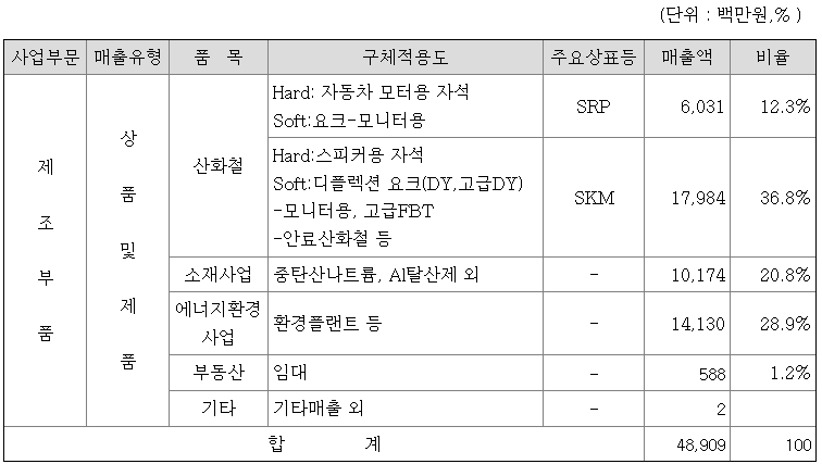 가. 주요 제품 등의 현황