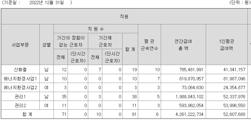 EG 연봉 2022년 기준 공시자료