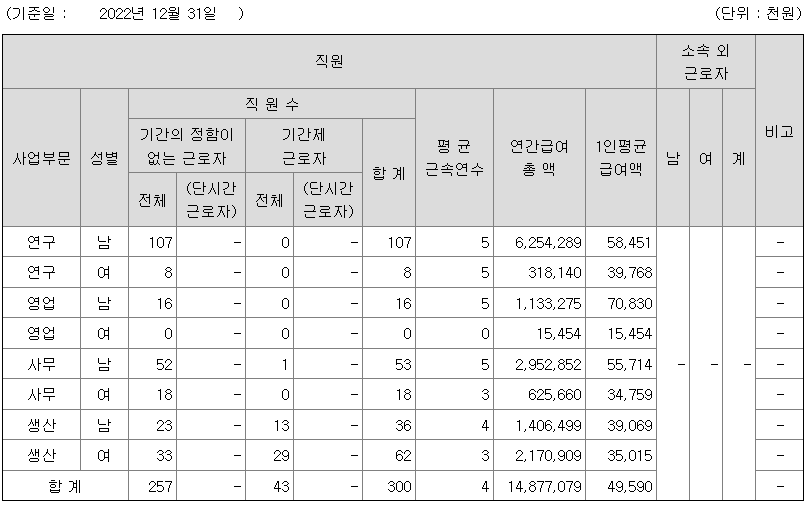 전체 평균연봉은 4959만원이고 직원수는 300명입니다.