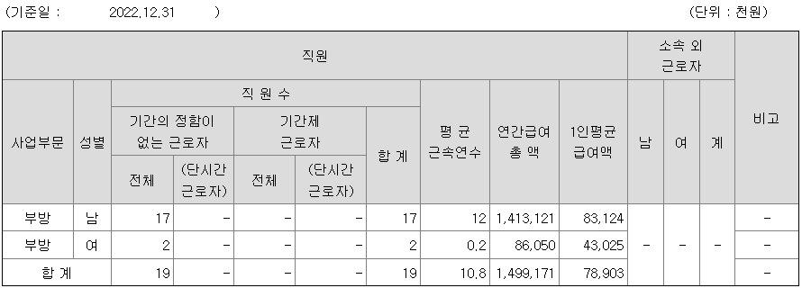 남성의 평균연봉은 8312만원이고 직원수는 17명, 여성은 4302만원이고 직원수는 2명입니다. 전체 평균연봉은 7890만원이고 직원수는 19명입니다.