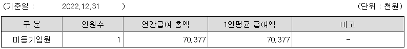 미등기임원의 평균연봉은 7037만원이고 직원수는 1명입니다.