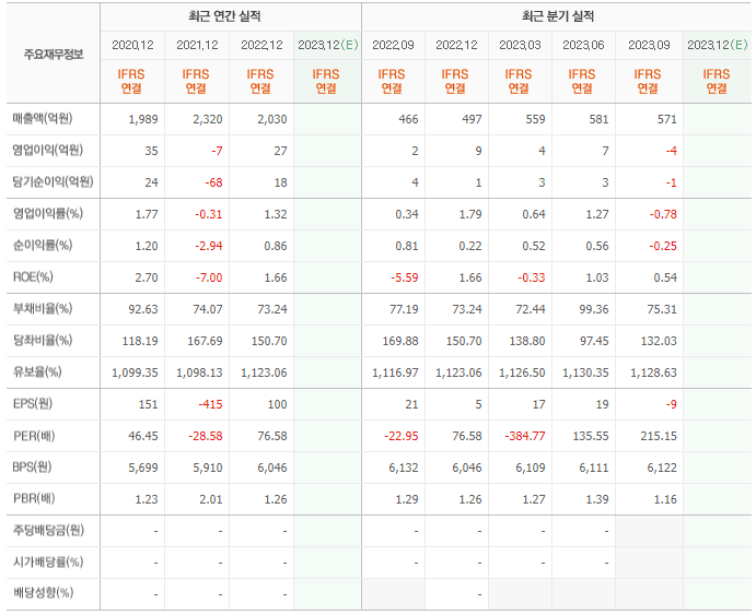 2022년 매출은 2030억, 영업이익은 27억, 당기순이익은 18억입니다. 그리고 영업이익률은 1.32%입니다.