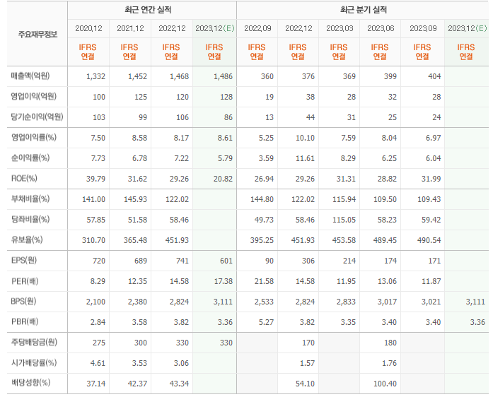 2022년 매출은 1468억, 영업이익은 120억, 당기순이익은 106억입니다. 그리고 영업이익률은 8.17%입니다.