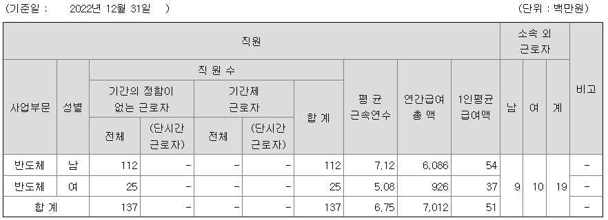 미등기임원의 평균연봉은 1억이고 직원수는 4명입니다.