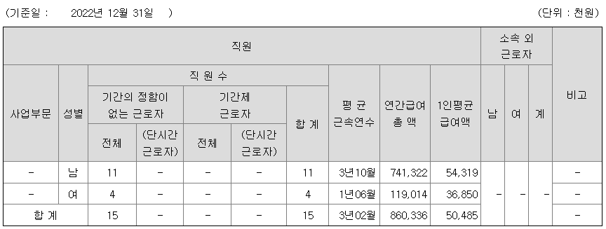 미등기임원의 평균연봉은 6394만원이고 직원수는 2명입니다.