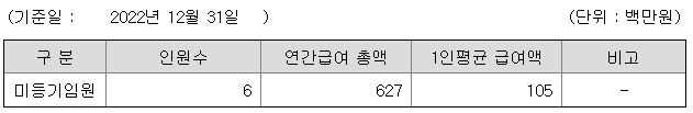 미등기임원의 평균연봉은 1억 500만원이고 직원수는 6명입니다.