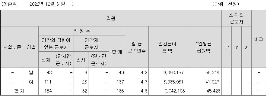 미등기임원의 평균연봉은 1억 4320만원이고 직원수는 2명입니다.