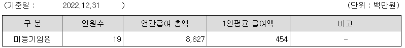 미등기임원의 평균연봉은 4억 5400만원이고 직원수는 19명입니다.