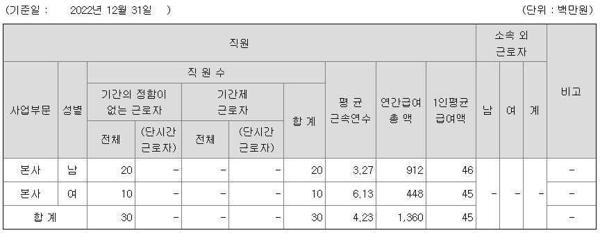 미등기임원의 평균연봉은 8600만원이고 직원수는 4명입니다.