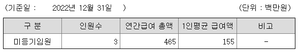 미등기임원의 평균연봉은 1억 5500만원이고 직원수는 3명입니다.