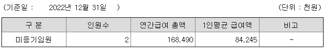 미등기임원의 평균연봉은 8424만원이고 직원수는 2명입니다.