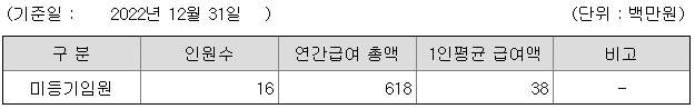 미등기임원의 평균연봉은 3800만원이고 직원수는 16명입니다.