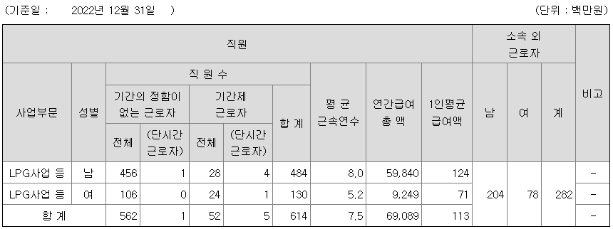 LPG사업 등 | 남 | 484 | 8.0 | 124 |