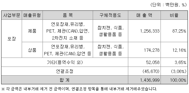 지배기업은 1980년 5월 10일자로 설립되어 각종 포장재와 알미늄을 제조, 가공 및 판매하고 있습니다. 당기 보고기간 종료일 현재 지배기업의 자본금은 146,277백만원이며, 최대주주는 동원산업(주)(지분율 70.67%)입니다.