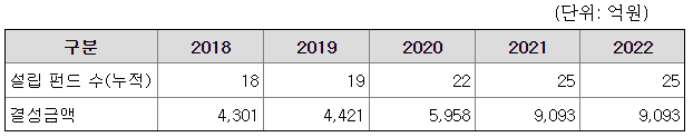 [컴퍼니케이파트너스(주)의 최근 5년간 펀드 설립 실적(누적기준)]
