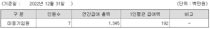 미등기임원의 평균연봉은 1억 9200만원이고 직원수는 7명입니다.