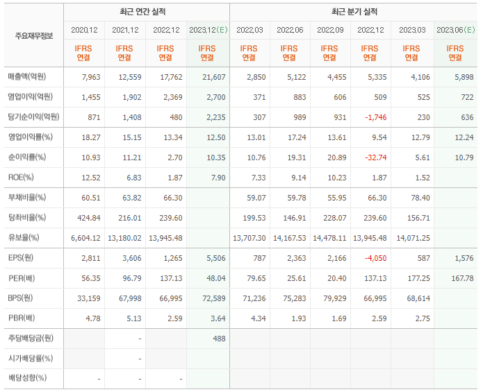 2022년 실적은 1조 7762억, 영업이익은 2369억입니다. 그리고 영업이익률은 13.34%입니다.