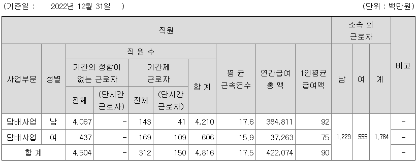 케이티앤지(KT&G) 연봉 2022년 기준 공시자료