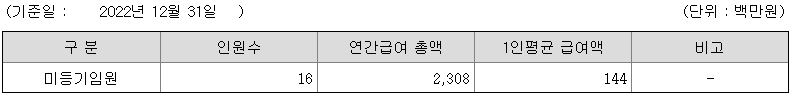 미등기임원의 평균연봉은 1억 4400만원이고 직원수는 16명입니다.