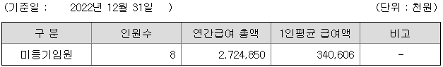 미등기임원의 평균연봉은 3억 4000만원이고 직원수는 8명입니다.