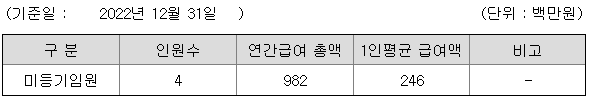 미등기임원의 평균연봉은 2억 4600만원이고 직원수는 4명입니다.