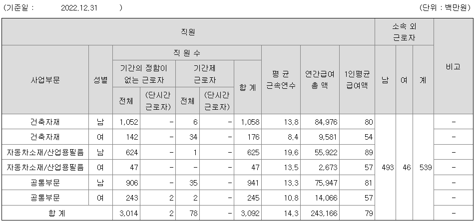 LX하우시스 연봉 2022년 기준 공시자료