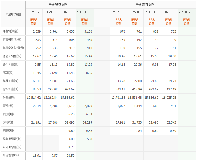2022년 매출은 3035억, 영업이익은 506억, 당기순이익은 419억입니다. 그리고 영업이익률은 16.67%입니다.